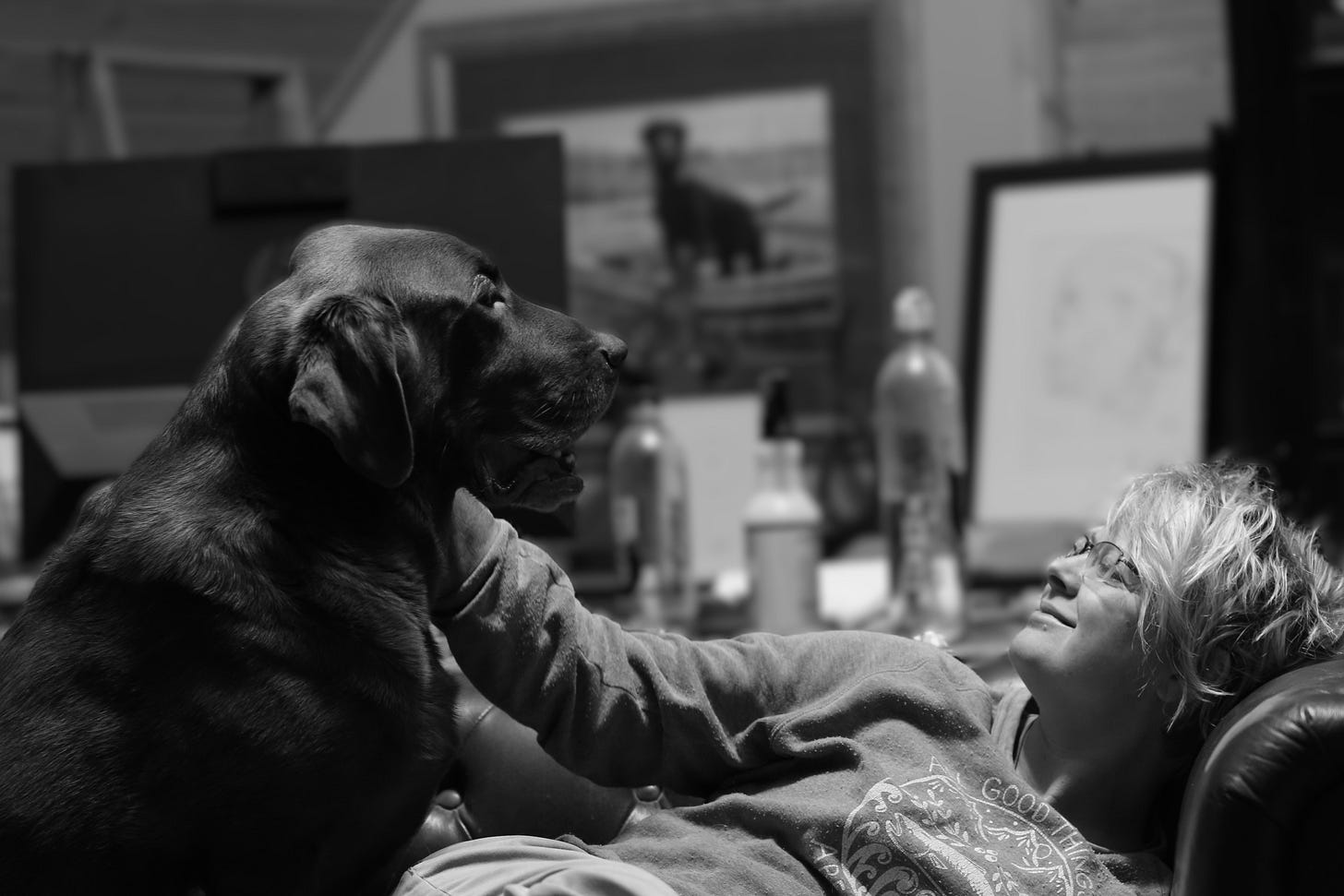 These private musings are not things I usually say out loud or consider worth sharing, and yet, here we are. A girl and her dog. Grateful to be alive, even if his only commentary is a deep sigh and a snore. Rigby is stretched across my lap, all 109 pounds of him, a giant sack of potatoes and the world’s best therapy blanket in one, with me peeking out from underneath.